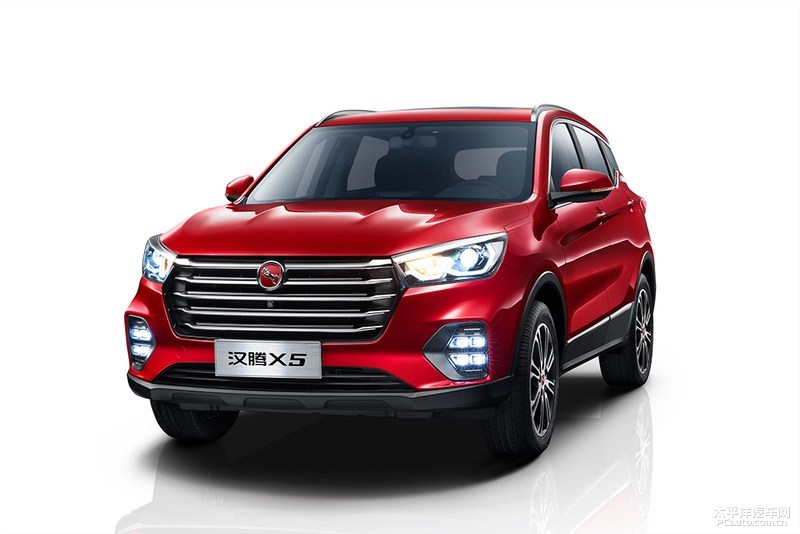 最新款汉腾X5最新款汉腾X5选用全新升级造型设计語言,六边形前脸加上不锈钢装饰,总体更加精美。正下方添加全新升级四点式LED前雾灯,进一步提升识别度。除此之外,新款式的17寸多副铝合金轮毂为全车增加健身运动气场。