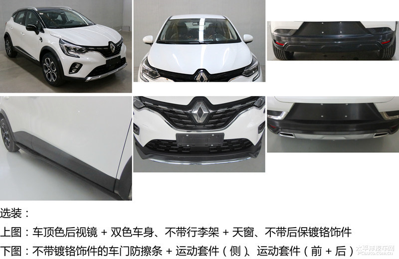 从申请图中由此可见,新汽车选用了雷洛全新的家族化设计构思語言,填满时尚潮流炫酷气场。前脸的前前杠室内设计风格沒有大幅度更改,但是参照了其大前灯选用了雷洛全新的家族化设计构思語言,与新一代Clio有多少类似,C字型的LED日行灯设计构思十分具备识别度。除此之外,新汽车选用了两色汽车外形设计,灰黑色汽车后备箱减少了车体的視覺高宽比,更显健身运动。