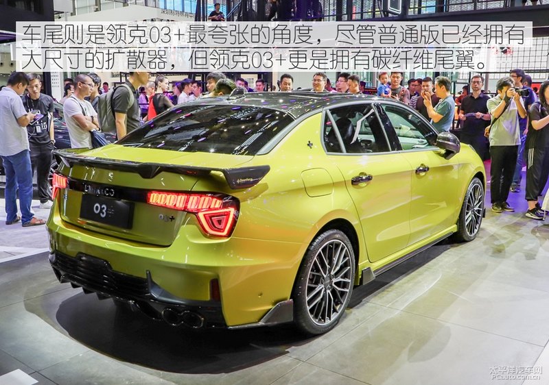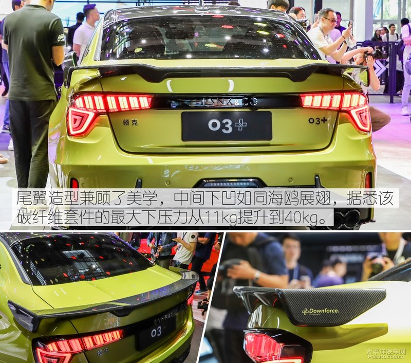 造型设计上,领克汽车03 比一般版03更加冷峻,添加复合材料模块,改进了流体力学特性,进而提高操纵可靠性和动态性主要表现,整套的模块可以出示40kg的较大 下工作压力。实拍视频车系的车体色调为领克汽车03 的专享色调——炫燃金,汽车后备箱也被熏黑了解决。