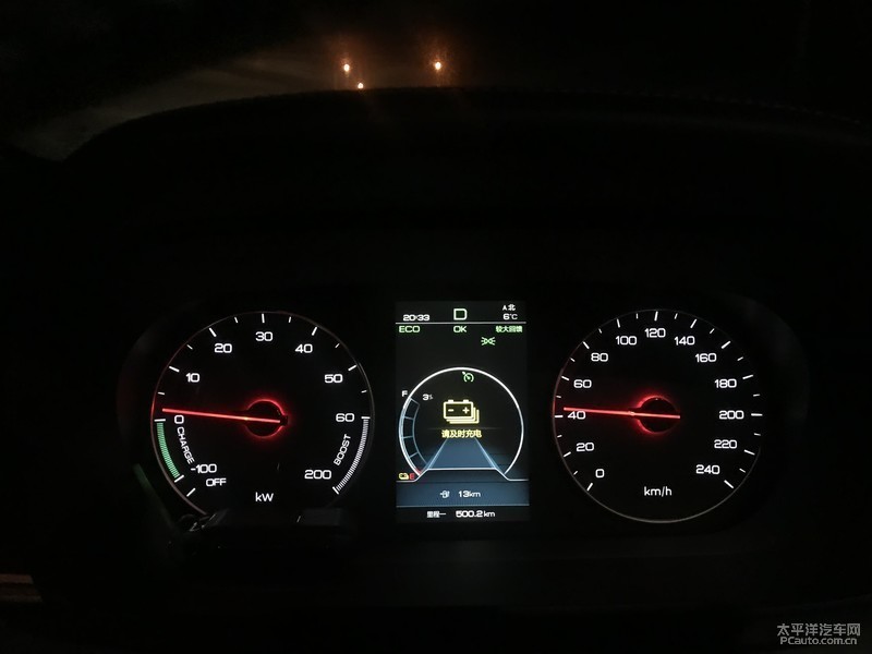 当日夜里20:33分,这台参加挑戰的全新升级秦EV早已行车到500km,这时行车电脑提醒用电量剩下3%,依照省道实时路况看来,每1%的用电量在40km/h的时速下,大概能向前4-5km,从而测算行到用电量为0,還是能跑好一段路的。但是因为太迟,而且小编早已进行本次挑戰里程数,为安全性考虑遂决策已不再次绕道。