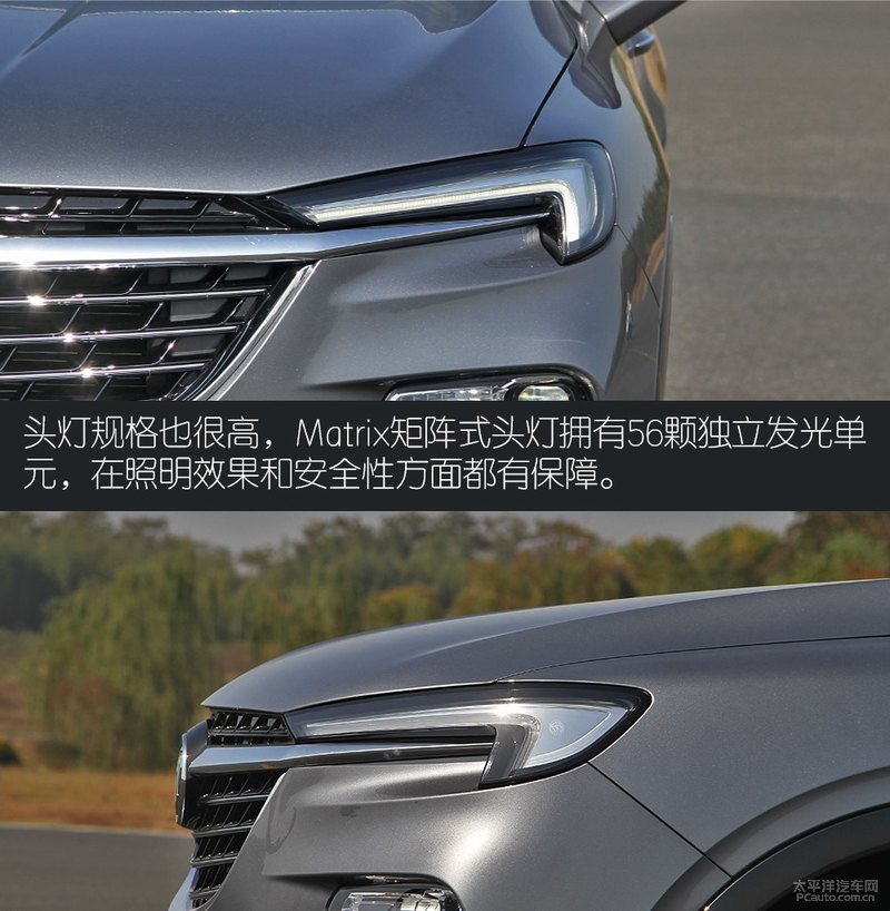做为别克汽车主打产品SUV的旗舰级,新汽车前脸很有支撑力,盾形前杠正中间围绕了长细不锈钢件,变长新汽车横着的視覺总宽。另外全系列标准配置了积极前脸,具有了减少空气阻力、提升柴油发动机热效的作用。车灯的配备也很高,名叫Matrix矩阵式管理的LED车灯由56颗发亮模块组成。