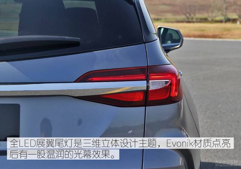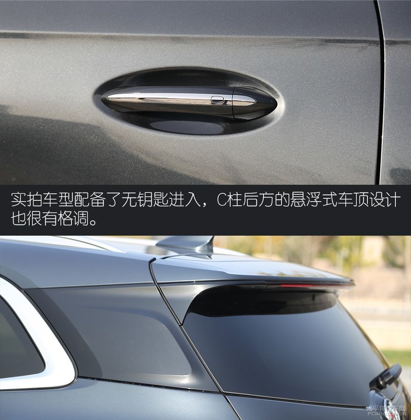 后尾的角度就是说这辆车更为魁梧厚实的地区,升降式的后车窗玻璃让车体纤长而圆润。与后尾灯围绕的银白色饰条和前脸相映衬。28T的出厂铭牌也突显了它的驱动力水平。