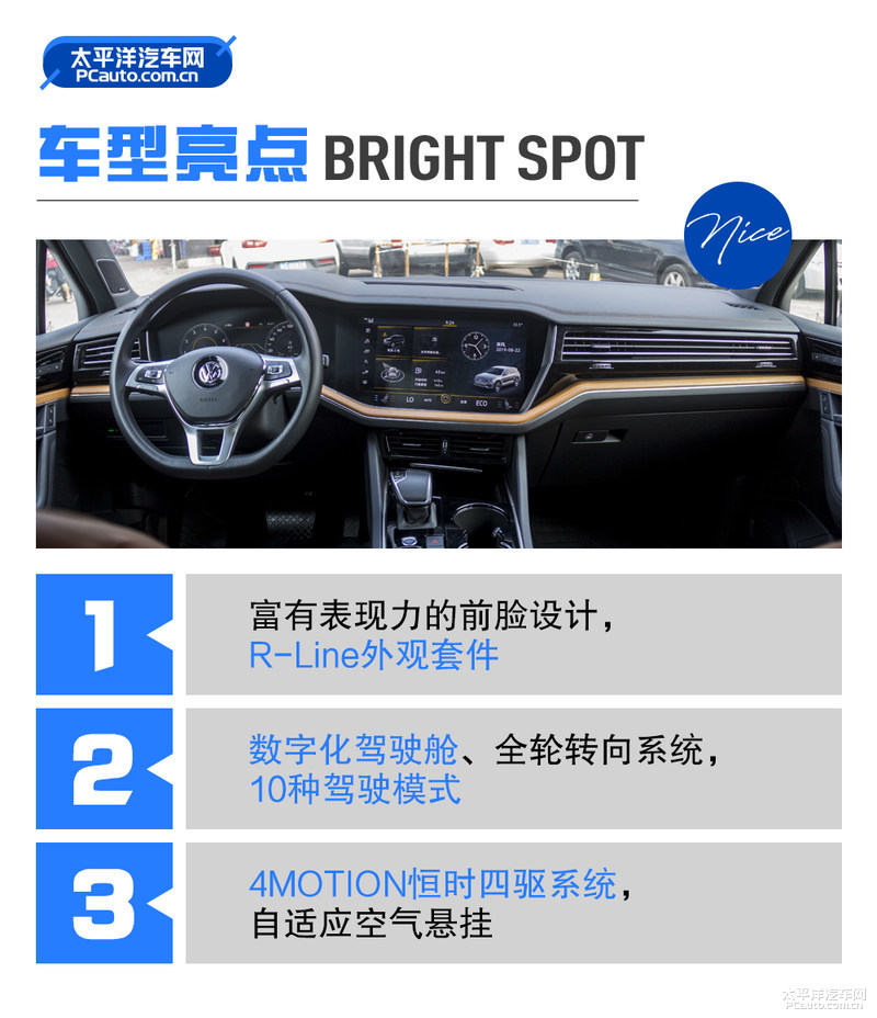 途锐车内饰乃至拥有自己,大家将它取名为“Innovision Cockpit”大数字驾驶室,从设计构思外型上看来,好像大家Arteon和奥迪车A7的集合体,但这确是全新升级的途锐车舱。趋向于司机的15英尺中控台大屏幕结合了绝大多数的作用,基本上替代了全部的物理学功能键,主要表现充足新潮,这一点在一向较为传统的大众车型上是非常难能可贵的。