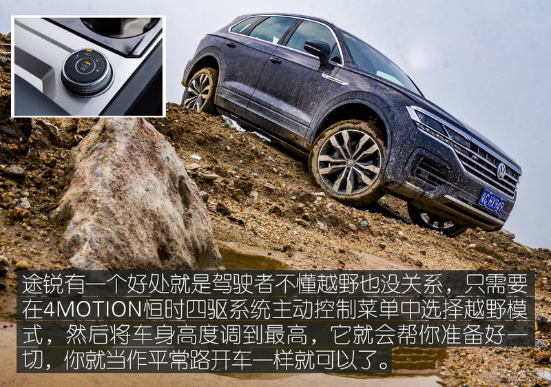 途锐有一个益处就是说驾驶员不明白越野车也没事儿,只必须在4MOTION恒时四驱系统软件积极操纵菜单中选择越野车方式,随后将车体高宽比调至最大,它就会帮你提前准备好一切,你也就作为平时路驾车一样就就行了。