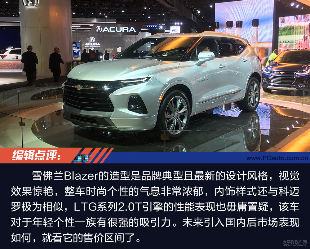 1月14日,雪弗兰主打产品全新升级SUV——Blazer在2019北美车展上现身。新汽车属中小型SUV,精准定位接近雪佛兰探界者和Traverse车系中间,配用2.5L/和.6L2款自吸柴油发动机,配对9AT变速器。有关信息称新汽车将在2019年之内由上汽通用导入国内。