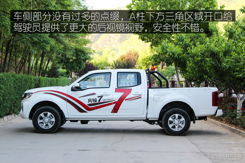 风骏7出示了大单双排与小单双排2个版本号可选,这也与大部分皮卡车归类一样,车体规格上,小双排车身规格为:5095*1800*1760mm,轮距为3035mm。车箱规格为1380*1460*480mm。而大双排车型规格高宽比与总宽维持不会改变,仅仅长短做到了539毫米,而且轮距也是300mm的提升,车箱长短也另外提升了300mm,做到了1680mm。