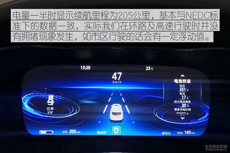 实际上续驶并没什么可调侃的地区了,配置了中国领跑的“三合一电驱”, 让其综合性工作状况NEDC达到405千米,基础遮盖了平时安全驾驶的生活半径。尽管也没有对这辆车重装系统的续驶检测,但人们具体安全驾驶这辆车开展检测时并沒有满格电,充电电池剩下用电量约一半左右,续驶205 km,在我们24小时检测进行后,表显仍提醒剩下108km续驶。这在其中人们还开展了加快及制动系统检测那样长时间负荷电动机运行的检测,那样的续驶還是充足比较满意的。