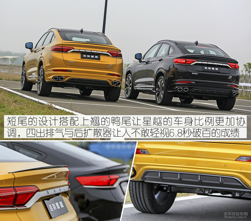 我觉得对比长城哈佛F7x与北京长安的CS85,吉利星越在设计构思上更为的和睦,它有着一个短尾的造型设计,根据小的鸭尾非常好的展示出了其紧凑型健壮的造型设计轮廊,而在20寸健身运动轮圈与四出排气管设计构思的构思下,星越特性韵味的一面被集中体现。