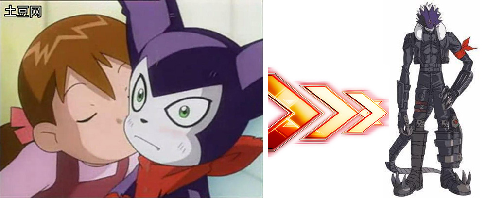 小妖兽(上图左)数码进化,变为战斗能力十足又酷帅的堕天地狱兽(上图右),整体实力得以抵抗含有主角光环的红莲骑士兽,可是堕天地狱兽就是说小妖兽的“最顶配”么?并并不是。