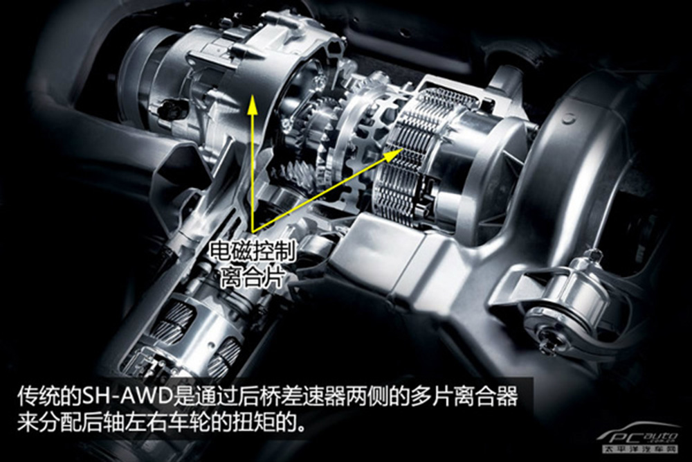 而SH-AWD呢,则真实是一套能让讴歌吹一辈的的四驱系统,实至名归的当家的高新科技。对比起其他汽车厂的4WD,讴歌的SH-AWD 4WD不一样的是,它是主要考虑到的是道路特性。SH-AWD沒有传统式的差速器,只是选用一套固定不动占比的分动设备来替代,SH-AWD系统软件的前桥总成部位有一个前后左右轴的分动设备,前后左右轴减速比稳定为30:70。前后左右轴的扭矩分派由坐落于汽车后桥的SH-AWD模块內部的电磁感应离合片承担。
