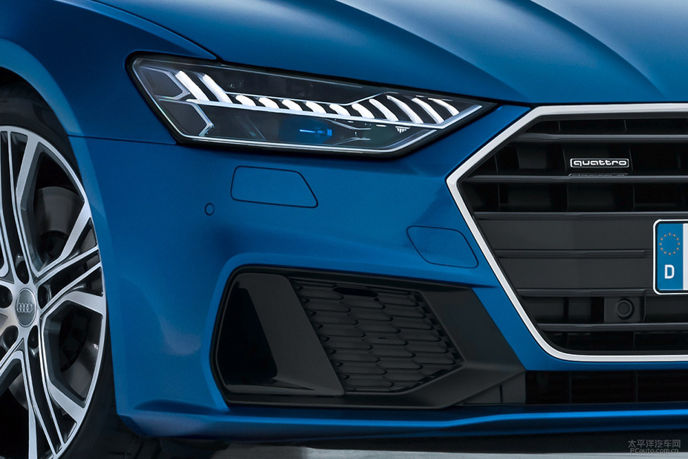 全新升级设计语言选用了阔大的表层和明晰的菱角,并将装饰设计原素降低至最少。一体式单框前脸占有了全新升级奥迪A7的前端开发。前脸更加宽敞,部位也较低,令人一眼就能辨认出这款四门轿跑车的健身运动特点。
