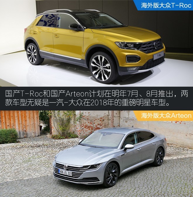 从图中由此可见,深受顾客关心的一汽-大家第一款SUV车系国内T-Roc方案可能在20187月发布,而称为美丽大众车型——大众CC的继任国内Arteon则可能在20183月发布。这2款车系毫无疑问是一汽-大家在2018的重磅消息大牌明星车系。
