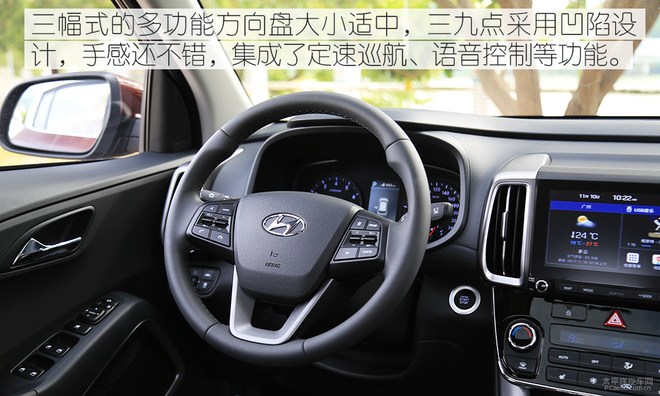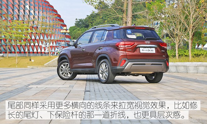 北京现代汽车新一代ix35一改前代车系圆滑的室内设计风格,在承传家族化流体力学雕塑作品2.0设计语言的基本上,融进具有光芒的Cliff式硬朗造型设计设计风格,令全车线框更为粗犷。
