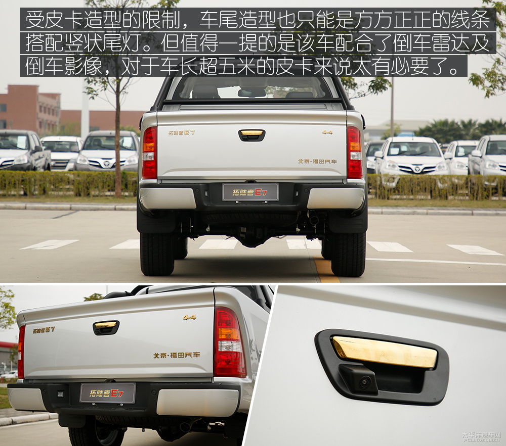 总结:有关拓陆者E7的外型,有二点是最该刻意说的,一是深耕细作皮卡车销售市场很多年的福田,她们很清晰我国的皮卡车客户必须什么,原厂配置仓储货架、车箱防锈处理镀层、汽车倒车雷达、倒车后视、轻越野轮胎这些,买车人拿到后立刻可以用原装车解决各种各样载客、轻越野车要求,无需再劳神改装各种各样配备。另一方面,从拓陆者E7的身上能见到我国皮卡车已经由商用化往乘用化衔接的印痕,外型中融进了大量时尚潮流的原素,即便做为平时家用轿车交通出行,也不会太违和感。