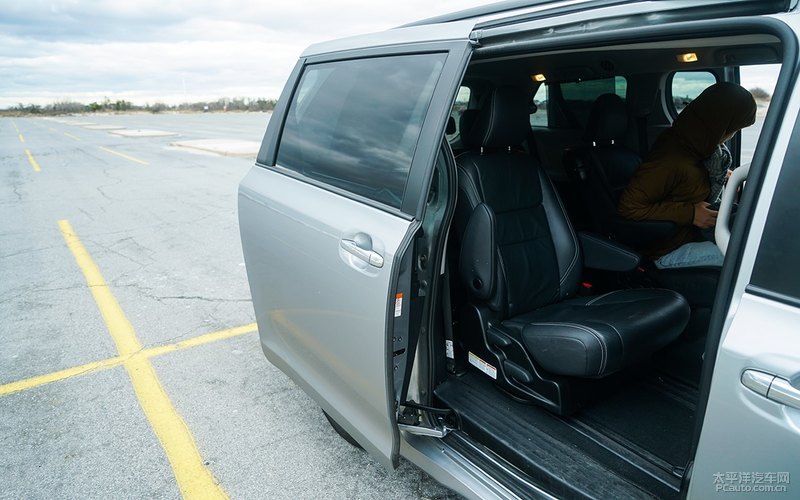 两侧的电动式滑门是塞纳这一级別的MPV务必的配备,门开全的张口挺大,上车时十分便捷。