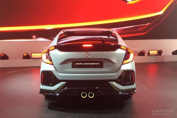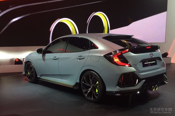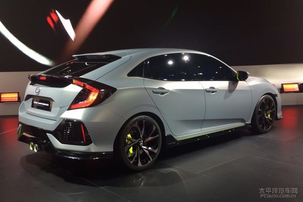 本次公布的是极其贴近批量生产版的原型车,多了一身让人心潮澎湃的车体大包围,看上去更好像本田思域Type-S。本田思域三厢原本就具备性感迷人的溜背设计方案,变为两厢版后多了个小尾翼联接两侧的“C”型后尾灯,也是一处让人眼前一亮的设计方案。最让车友肾上腺激素飙涨的就是中置双出的排气管合理布局。