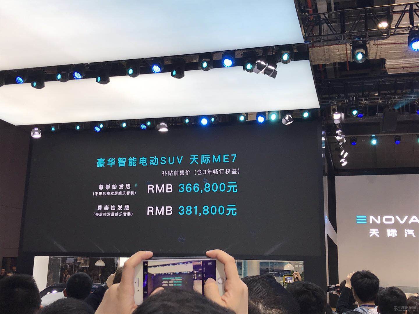 【尊流汽车网 2019上海车展】汽车展上,天际汽车宣布预购ME7车系。此车精准定位纯电动车中小型SUV,补助前具体指导市场价为36.68-38.18万余元,并将于年之内发售。