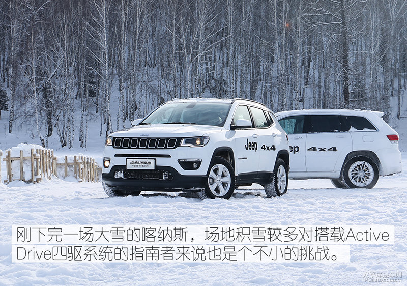 场地试驾与路面试架是一些不一样的,我们可以畅快玩乐吸引这片雪天。场所内早已事前放置好桩桶,这里我们可以感受到的车系是广汽菲克Jeep指南者,而且都早已换掉了固特异的WRANGLE系列产品雪地胎。