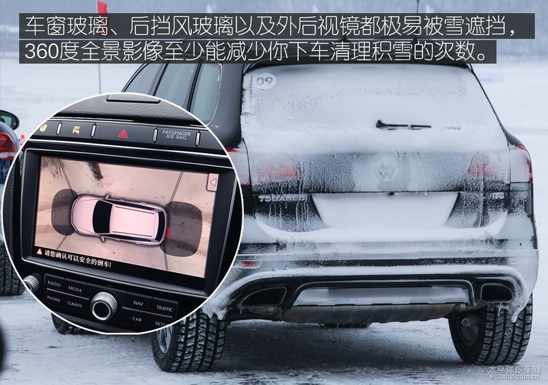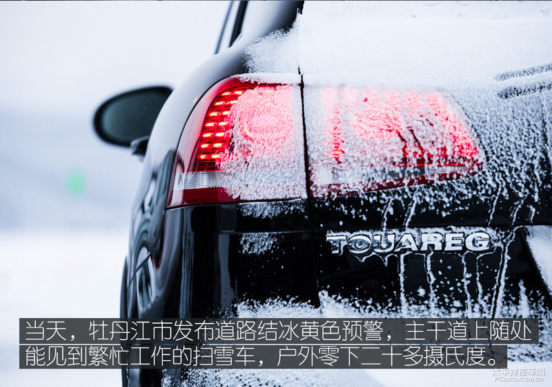 主要说一下途锐的身上事关风雪安全驾驶的好用配置吧。接近零下三十度的极端化自然环境里安全驾驶,空有一腔热血也徒劳无功,专享顶配车系(驭岳版、攀峰版及其行政部门版)的方向盘加热、座椅加热在这时尤其暖人。