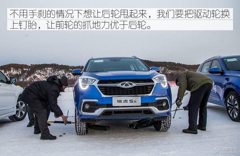风雪地面驾驶最重要的肯定是车胎了,人们先给瑞虎5x换掉雪地胎。但是,本次人们也有场地试驾,也就是在黑龙江省冰上上去试着两开车的飘移。因此,车胎也有二种配备,雪地胎和钉胎。
