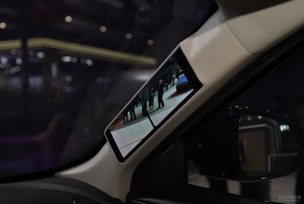 值得一提的是,新汽车选用了无盲点A柱设计方案,A柱两边各配搭一个小显示屏,便捷司机观查车外情况。第一眼看上去会较为生硬,只有说现代感很强。