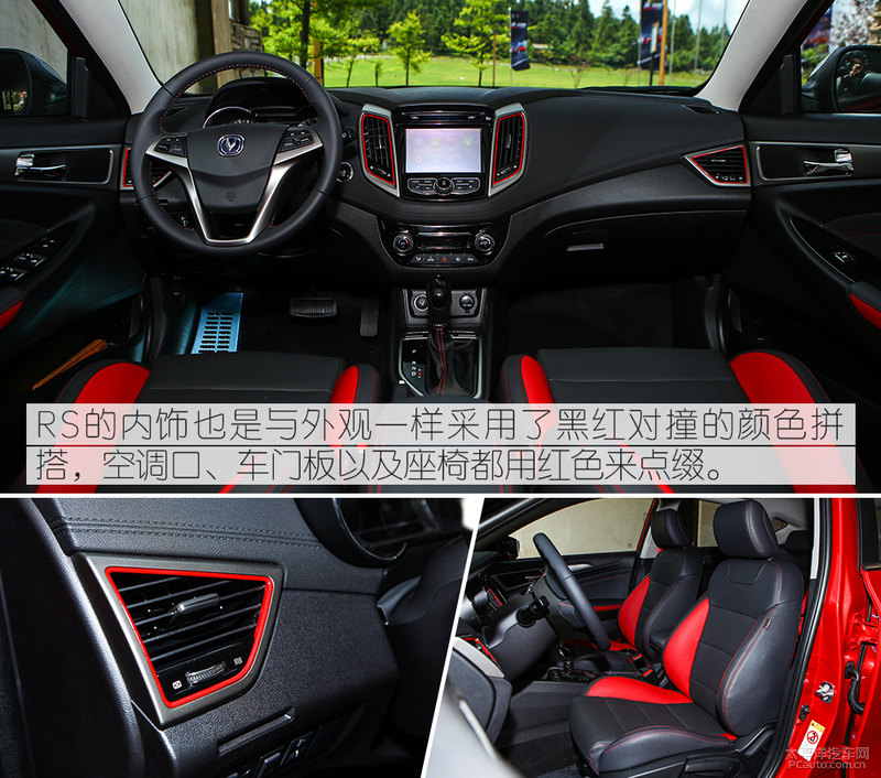 RS的车内饰与外型一样也是选用了黑红互撞配搭,空调风口、汽车车门边梁及其坐椅都添加了鲜红色开展装点,加剧了车内饰的健身运动气氛。10.1英寸的车内仪表盘选用了虚似显示信息,多媒体系统的页面很简约,入门度非常容易,常见的作用也是十分全,像CarPlay、CarLife等互连系统软件常有适配。