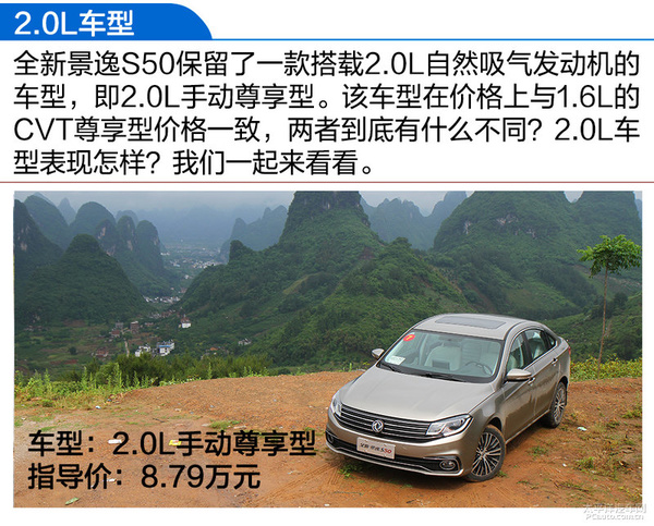 在本次试架以前,我的朋友早已对全新升级景逸S50的1.6L车型干了深层次的试架,因而人们就已不累述全系列车系,而仅仅聊一聊这台2.0L车型有什么不一样。对比于同档次的1.6L CVT悦享型,2.0L手动式悦享型在外型车内饰上面维持了一致,将新汽车的年青时尚潮流设计风格详细的保存了出来,沒有做一切“放码”的修改。实际上针对一款家用轿车而言,全新升级景逸S50的外型充足年青了。