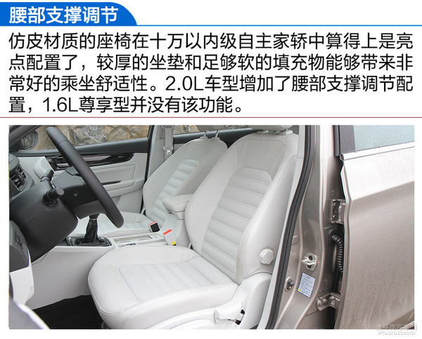 对比于同档次的1.6L车型,2.0L车型在配备上也是小的提高,提升了电子驻车作用及其坐椅腹部支撑点调整,而这种配备全是在1.6L旗舰型上才配置的,这也算作2.0L车型的一个优点。