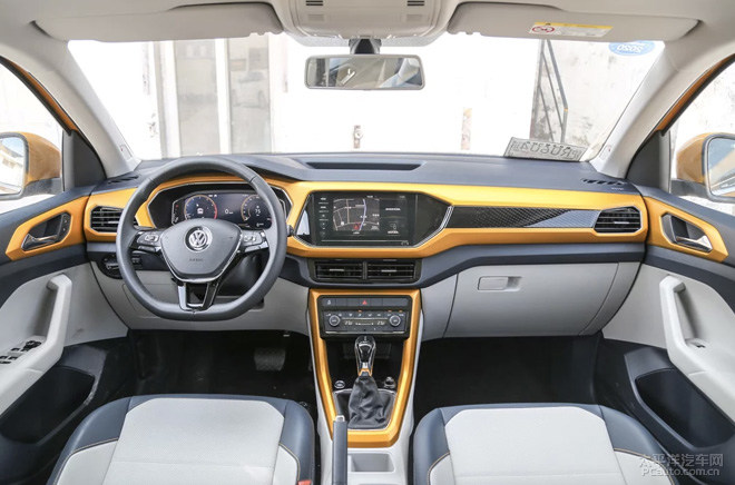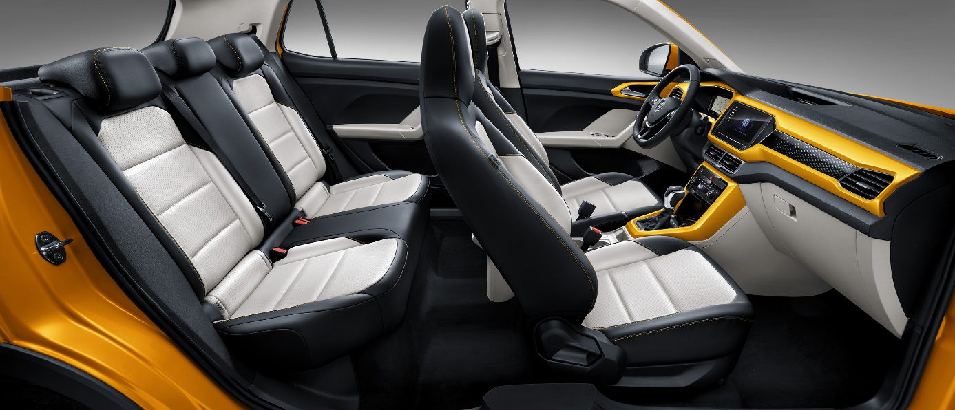 车内饰层面,T-Cross选用Color-matching同色系內外设计方案,例如魅力金车体会配搭魅力金装饰面板,但最少配车系车内饰为灰黑色。
