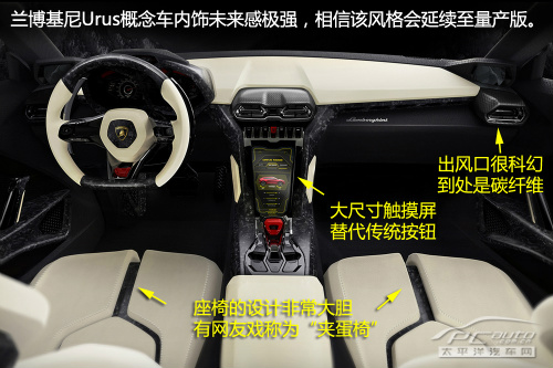将车内饰构建出一种明显未来感、战机驾驶舱感也是布加迪的传统式(最少是近十年来的),这一点人们从概念跑车Urus上还可以看得出一二。Urus定义车内装饰简约出现异常,如同Tesla Model S那般仅用一块尺寸较大触碰液晶显示屏取代传统式汽车中控控制面板上繁杂的按键。也有未来感十足的坐椅,虽然有网民见到坐椅造型设计后感觉下身忽然有点疼……