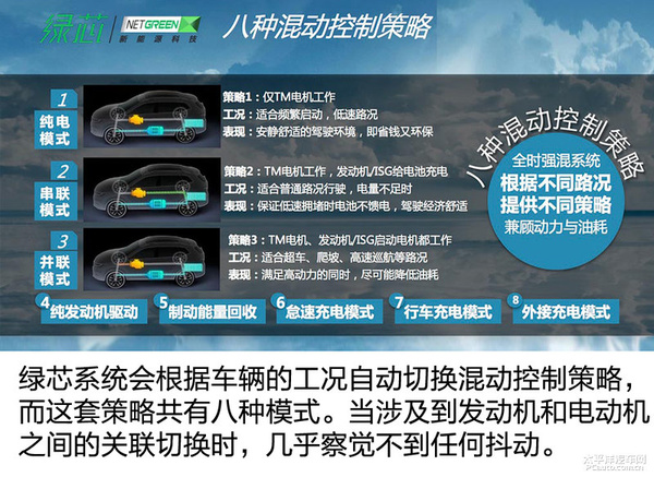 除开上边详细介绍的NORML(一般)和健身运动(SPORT)方式外,也有一冲ECO(环保节能)方式,该方式下能强制性电机驱动器车系,直到用电量做到应用低限。一般状况下,纯电驱动器的定速巡航里程数为60km,而该方式下除开动能收购抗压强度默认设置较高外,驱动力也不会孱弱,驱动器车子至130km/h的车速也不是难题。因此针对耗油量拥有极高规定的买车人,平时锁住ECO方式就能全道路安全驾驶了。