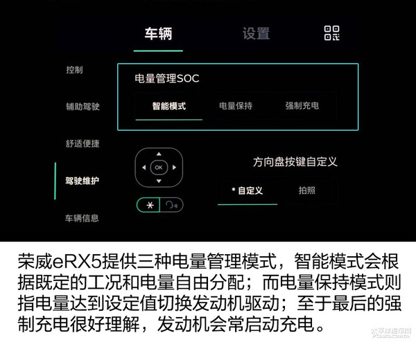 针对车子內部的电量管理,系统软件出示了三种方式,买车人能够 依据自身的爱好随意转换。而三种方式从字面意思上就比较好了解,坚信买车人稍稍了解就能精确的找到合适自身的电量管理方式。