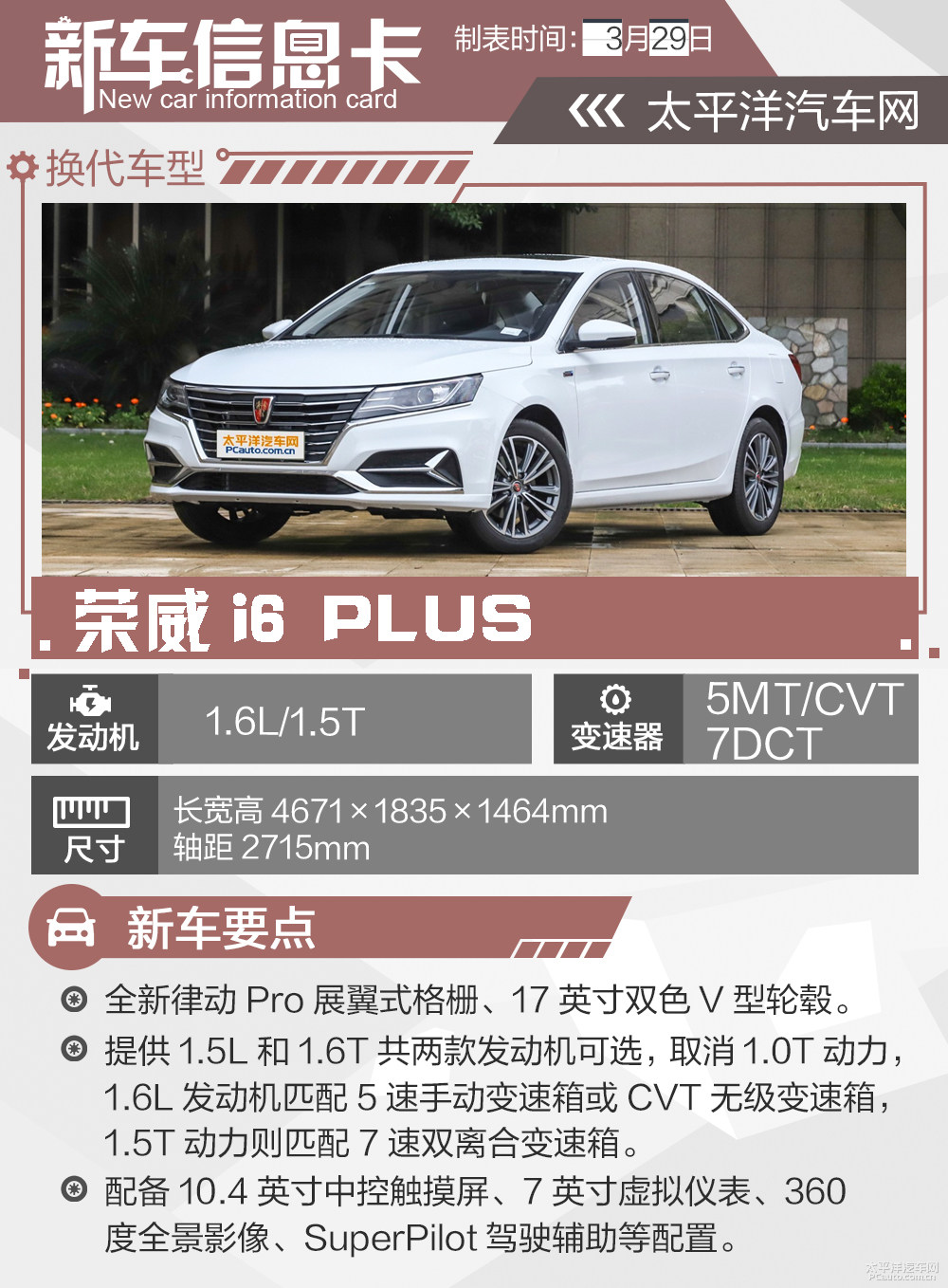 【尊流汽车网 新汽车频道栏目】4月12日,上汽荣威主打产品全新升级紧凑车荣威i6 PLUS正式上市,新汽车是根据荣威i6全方位升級而成,包含外型长相、乘座舒服、汽车动力系统、安全性配备、智能互联系统和质量质量。驱动力层面,荣威i6 PLUS配用1.5T和1.6L2款柴油发动机,官方网参考价为8.98-13.98万余元。