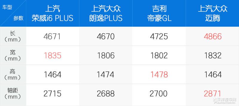 在规格层面,荣威i6 PLUS的尺寸各自为4671/1835/1464mm,轮距做到271毫米,车宽和轮距贴近了B级车水平。其车体总宽比大众迈腾也要大,除此之外271毫米的轮距也是技术领先平级敌人。依据官方数据,荣威i6 PLUS的头顶部室内空间为967mm,比大家朗逸PLUS空出了27mm。
