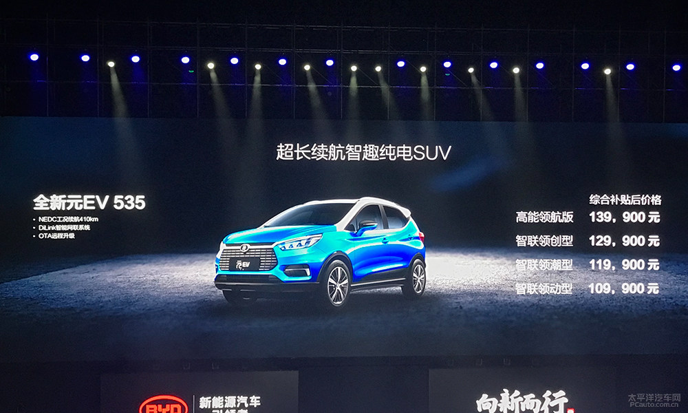 【尊流汽车网 新汽车频道栏目】3月28日,byd北京举行新产品发布会,比亚迪元EV车系里的进阶版本号元EV 535正式上市,综合性补助后市场价区段为10.99-13.99万余元。此车在续航能力层面对比先前再售的元EV 360车系有显著提高,从车系取名人们便可看得出其最大续航力达到535km,而国家工信部得出的综合性续驶为410km。