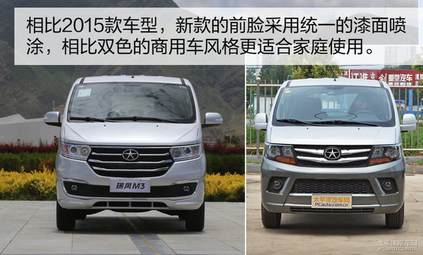 眼下的瑞风M3对比2015款车系,最大的变化集中化在前脸一部分。对比起旧款车系,瑞风M3宜家家居版选用了一体车体喷漆,产品造型设计也更为空气、时尚潮流。此外新汽车还导入了LED日间行车灯,在提高安全系数的另外,也给外型产生了更为年青的感受。