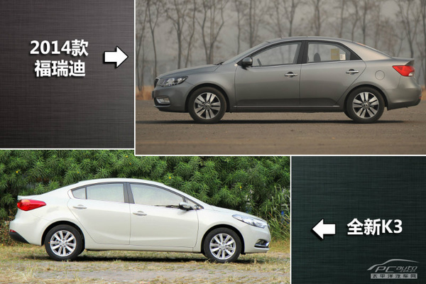 从车体的侧边看,能够发觉福瑞迪的线框要更为粗犷,而K3的车体则以更为顺畅的线框主导,看起来更为年青一些。