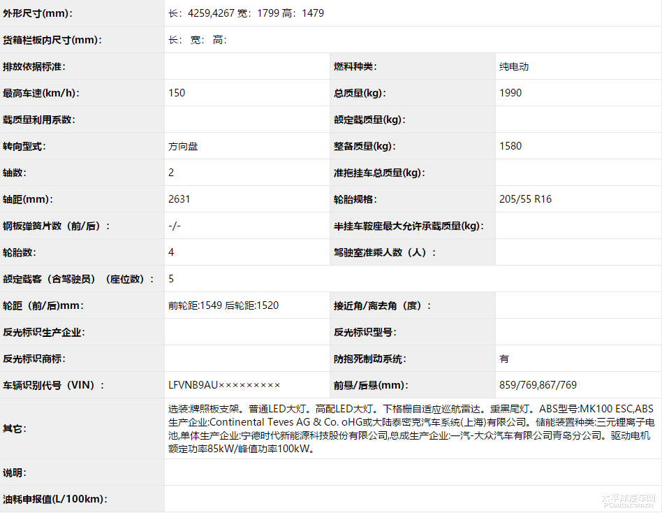 尾端一部分,则与汽柴油版基本一致,只是除掉了出气口。车体规格层面,尺寸各自为4259(4267)/1799/1478mm,轮距263毫米。除此之外依据配备不一样,新汽车配置了不一样款式的LED头灯组、自动巡航雷达探测和熏黑了后尾灯可提供选择。