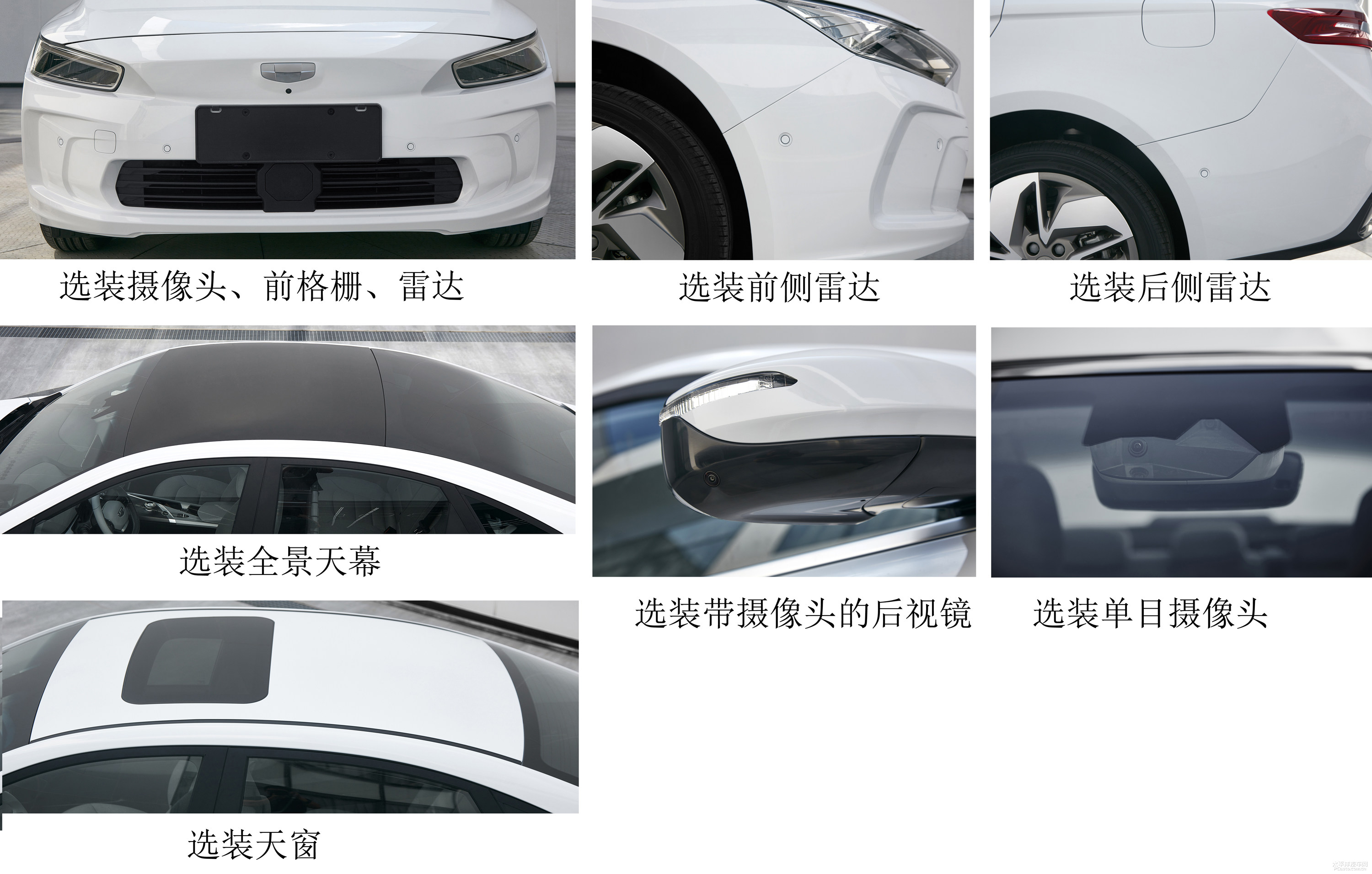 配备层面,依据申报信息Ge11可选配前监控摄像头、前后左右驻车雷达、自动巡航、全景天窗、全景图车子顶部等配备。轮毂有16英寸和18英寸二种挑选,伴随着轮毂规格的转变,轮胎规格各自为205/60 R16和195/50 R18。