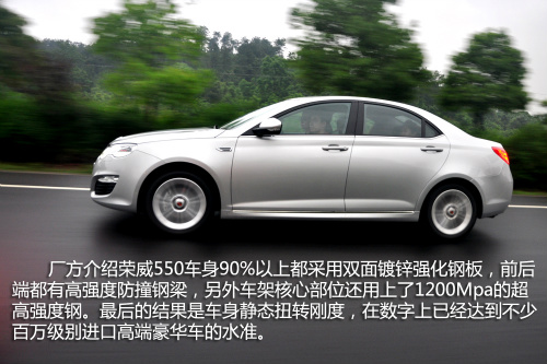 即然全是早已公布发售的车系,造型设计的详细介绍从此带过,更最该大家关心的也有车体加工工艺和用材。依照厂方详细介绍荣威550车体90%之上都选用两面热镀锌加强厚钢板,前后左右端都是有高韧性防撞钢梁,此外窗框关键位置还用到了1200Mpa的超高强度钢板。最终的結果是荣威550的车体静态数据扭曲弯曲刚度,在大数字上早已做到许多 上百万级別進口高档豪华轿车的水平,而大家的主观性试架体会也可以感受到,车体刚度确实好于许多 同档次竞争对手。