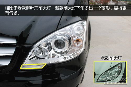 对比于旧款,奔驰唯雅诺3.0L外观设计上包含前进气口、车大灯、外倒车镜等都有所改进。