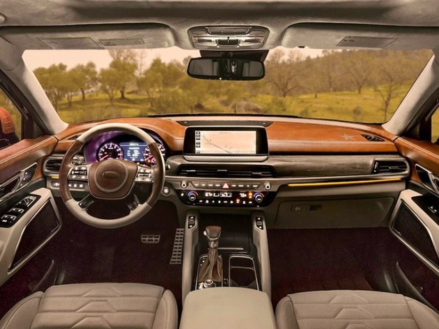 赶到Telluride原型车的车内饰,与众不同个性化的颜色让人印象深刻,但是产品造型设计并不浮夸,也具有许多 与起亚汽车在售车系现有的原素,比如升降式中控屏、四幅式多汽车方向盘和线框竖直的对称式中控台等,这种的款式均是家族化设计方案。