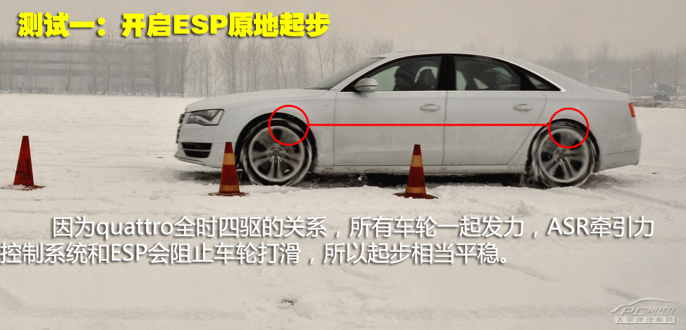 以便更为形象化地表明难题,大家各自开展了两组趣味测试,最先是奥迪S8的雪天静止不动发展。在打开包含ESP以内的全部电子控制系统之中,S8能够 圆满稳定地发展,自然速率并很慢,车胎也会产生跑偏,但是ASR牵引力控制系统软件和ESP电子器件平稳系统软件会十分立即地充分发挥,阻拦车轱辘跑偏,因此虽然发展速率跟干地对比真是是天渊之别,但至少车体姿势十分稳定,车里的驾驶员也不会有一切躁动不安。