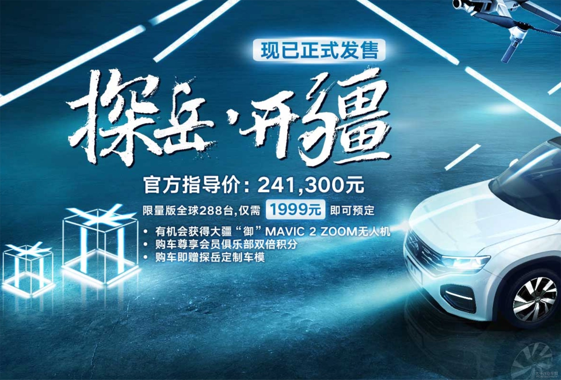 【尊流汽车网 新汽车频道栏目】此前,一汽-大家官方网公布,探岳开疆拓土版正式上市,新汽车共发布1款车系,官方网参考价24.13万余元,限定288台。