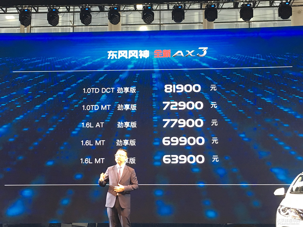 【尊流汽车网 新汽车频道栏目】11月16日,东风风神主打产品中小型SUV——AX3的新款汽车于在这届广州国际车展正式上市,共发布5款车系,具体指导市场价区段为6.39-8.19万余元。