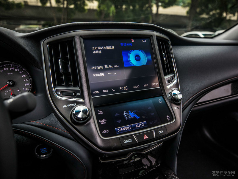 双屏幕大中控台還是有点儿现代感的,全自动摆叶的空调风口在如今流行的大中型豪华轿车上面找不着。但是一向重视应用性的丰田汽车竟然把常见的中央空调操作面板制成了一个触摸显示屏,并且开展溫度、风力的调整也要进到多级别莱单,那样的实际操作還是不足便捷。
