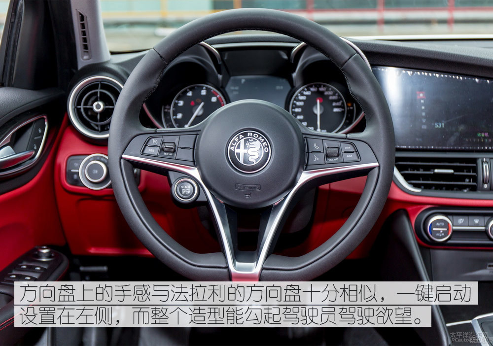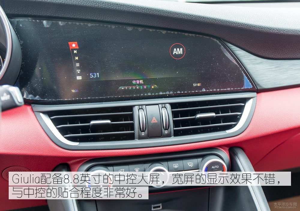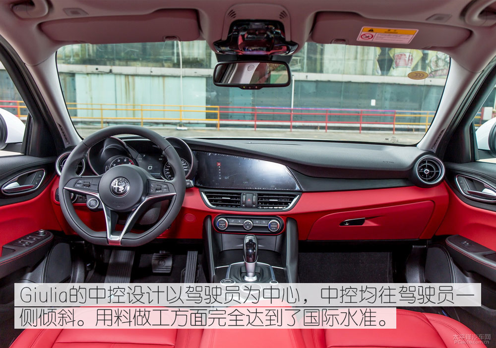 Giulia的车内饰对比之前的阿尔法罗密欧车型可谓是作出了巨大的改进,最先全部中控台选用了软塑遮盖,而中顶配车系为皮层遮盖 缝合线装饰设计,全部中控台尽管不突显哪些现代感,可是仍然拥有一种意大利风格的奢华设计感,以司机为关键的设计构思让中控台显著的偏重一边。