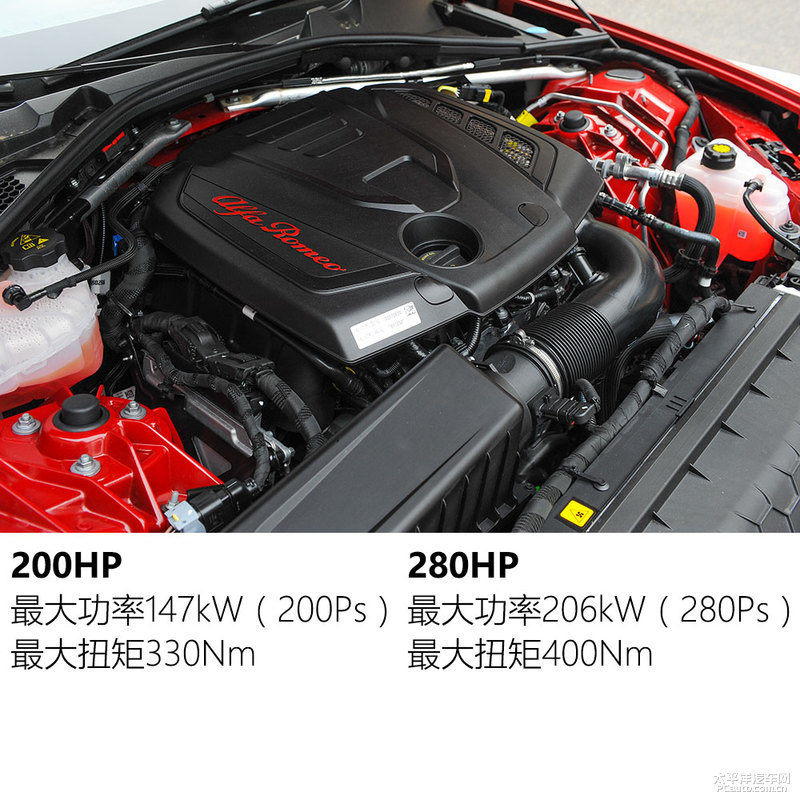 Giulia 尾标的数字意思其配用的柴油发动机大马力数,在其中280hp均配用了2.0L排气量的涡轮增压器模块,较大 280大马力,最大扭矩转速达到400Nm,与柴油发动机配对的8速手自一体变速器来源于采埃孚,这台变速器在Dynamic(健身运动)方式下,拥有非常迅速的换档速率。外置柴油发动机按置在前轴靠后的部位,具体可算作前中置的合理布局,50:50的前后左右平衡块确保操纵稳定性,车前导向性回应充足灵便。
