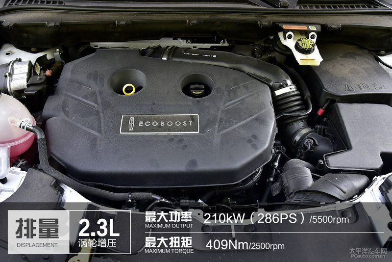 林肯汽车MKC总理版配用了一台排气量为2.3L的涡轮增压器柴油发动机,至大功率215kW(286PS),最大扭矩转速达到409N·m。与柴油发动机配对的一样是一台6速手自一体变速器。