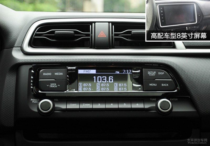 不锈钢装饰设计汽车方向盘添加多媒体系统功能键组,乳白色电源板车内仪表盘精美、易读性高,低配版车系选用纯色液晶显示屏游戏娱乐车载一体机,适用USB键入,顶配车系选用8英寸五颜六色液晶显示屏,适用3G通讯、车截共享资源WIFI、CarPlay&CarLife互连。